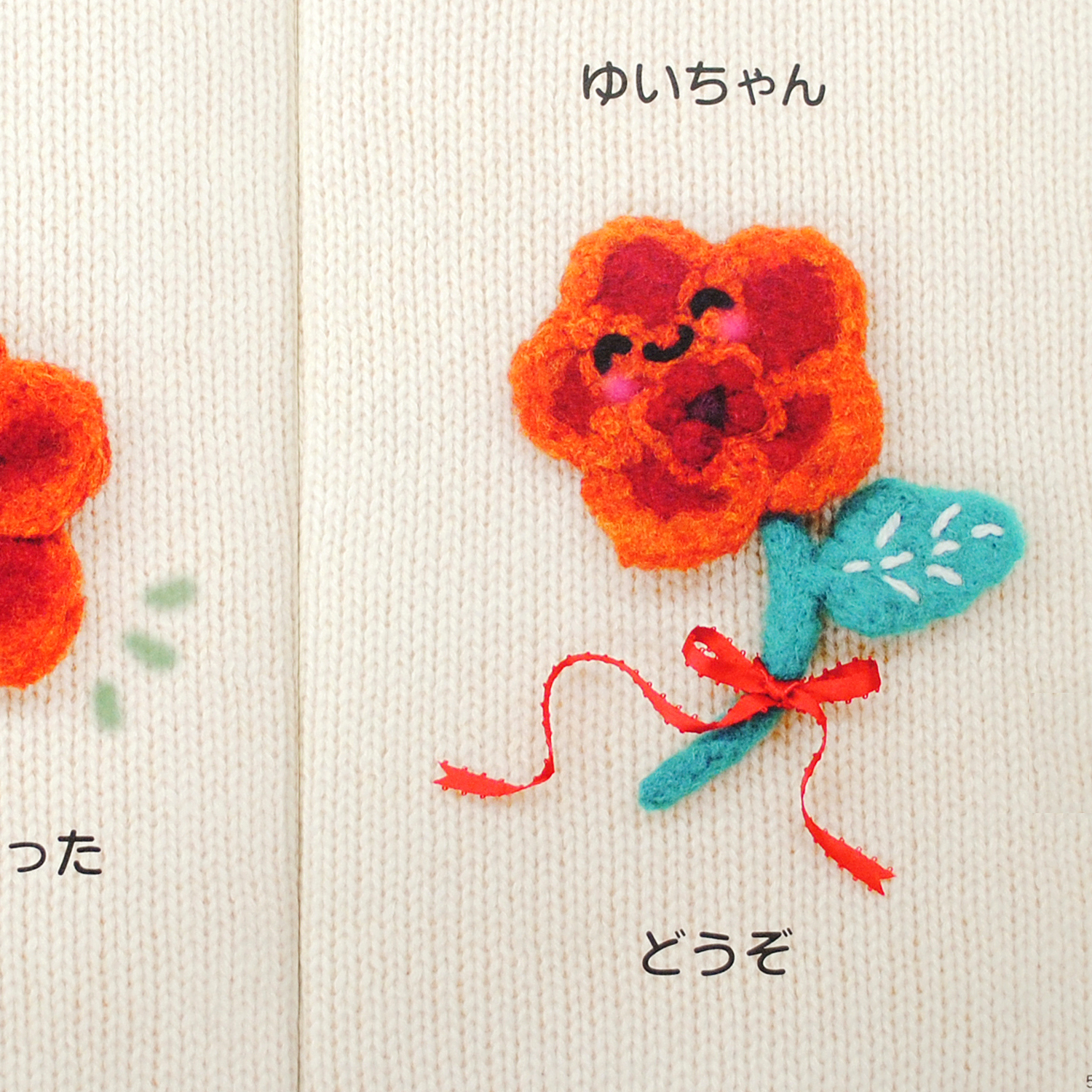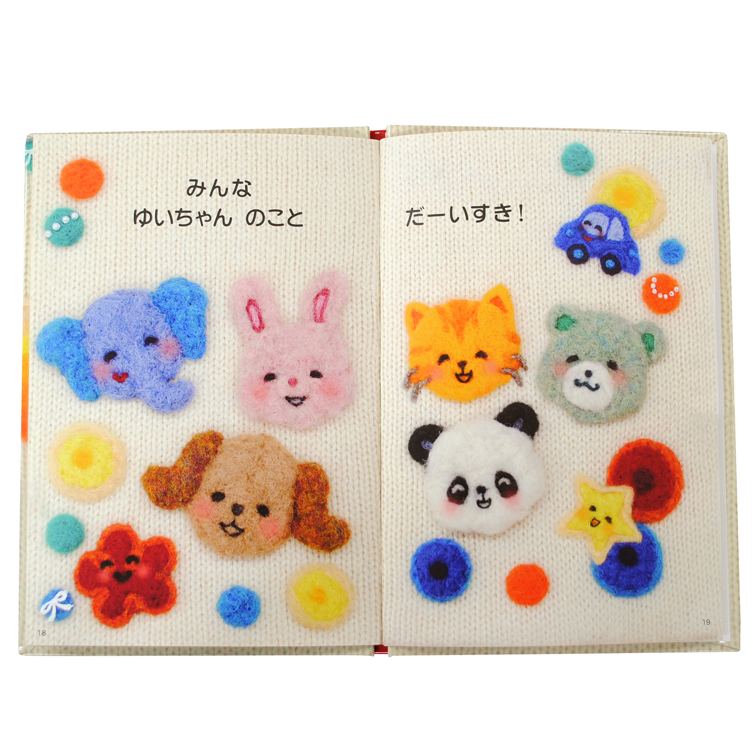 ひとつひとつ手作りされた羊毛フェルトを組み立て、1ページずつ丁寧に撮影して作られた絵本。 立体的な触感が感じられるような作りが特徴的な一冊です。 ニット模様の背景も本物のニットを撮影したものです。