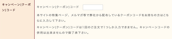 - A. 購入の際、カート内のお支払情報入力の段階で、キャンペーン(クーポン)コードを記入する欄が出てきますので、そちらにご入力ください。