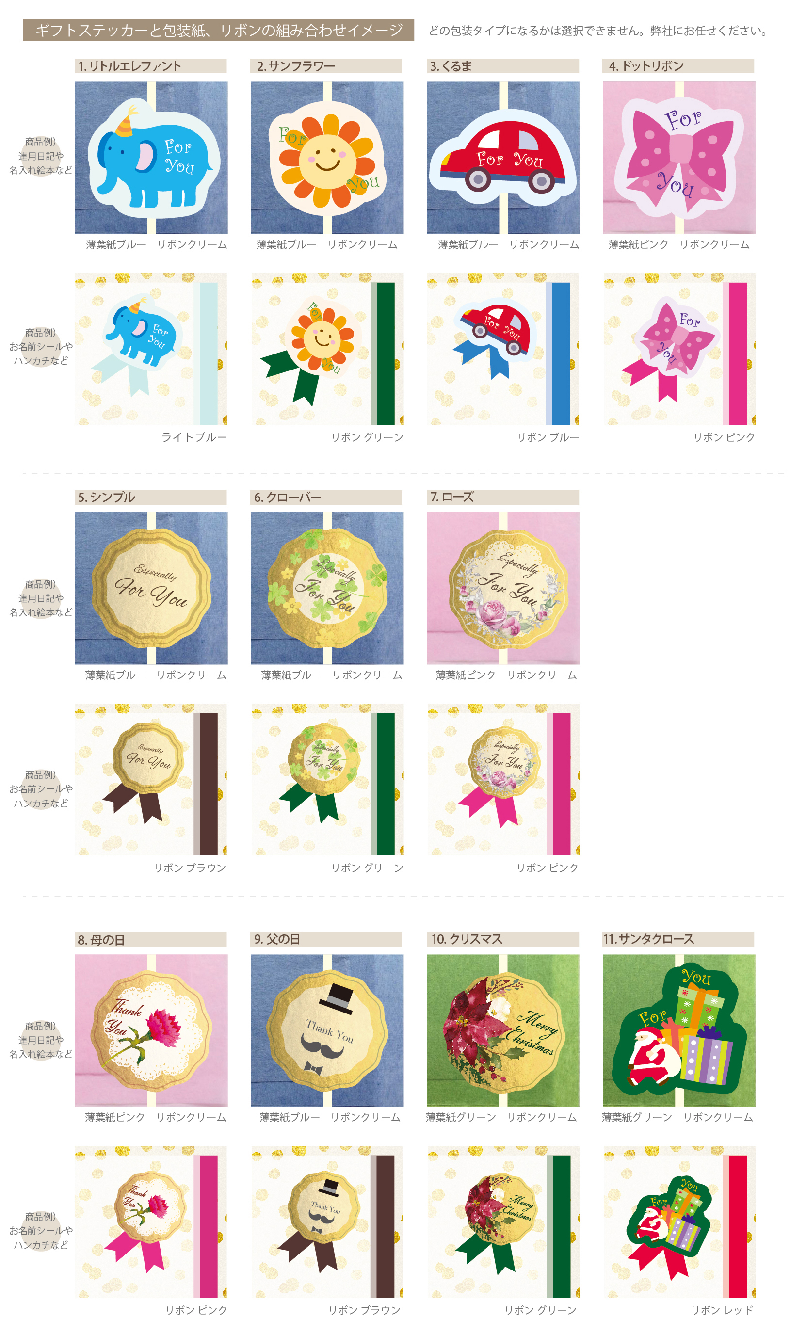 ※ギフトステッカーと包装紙、リボンの組み合わせは決めうちとなっております。